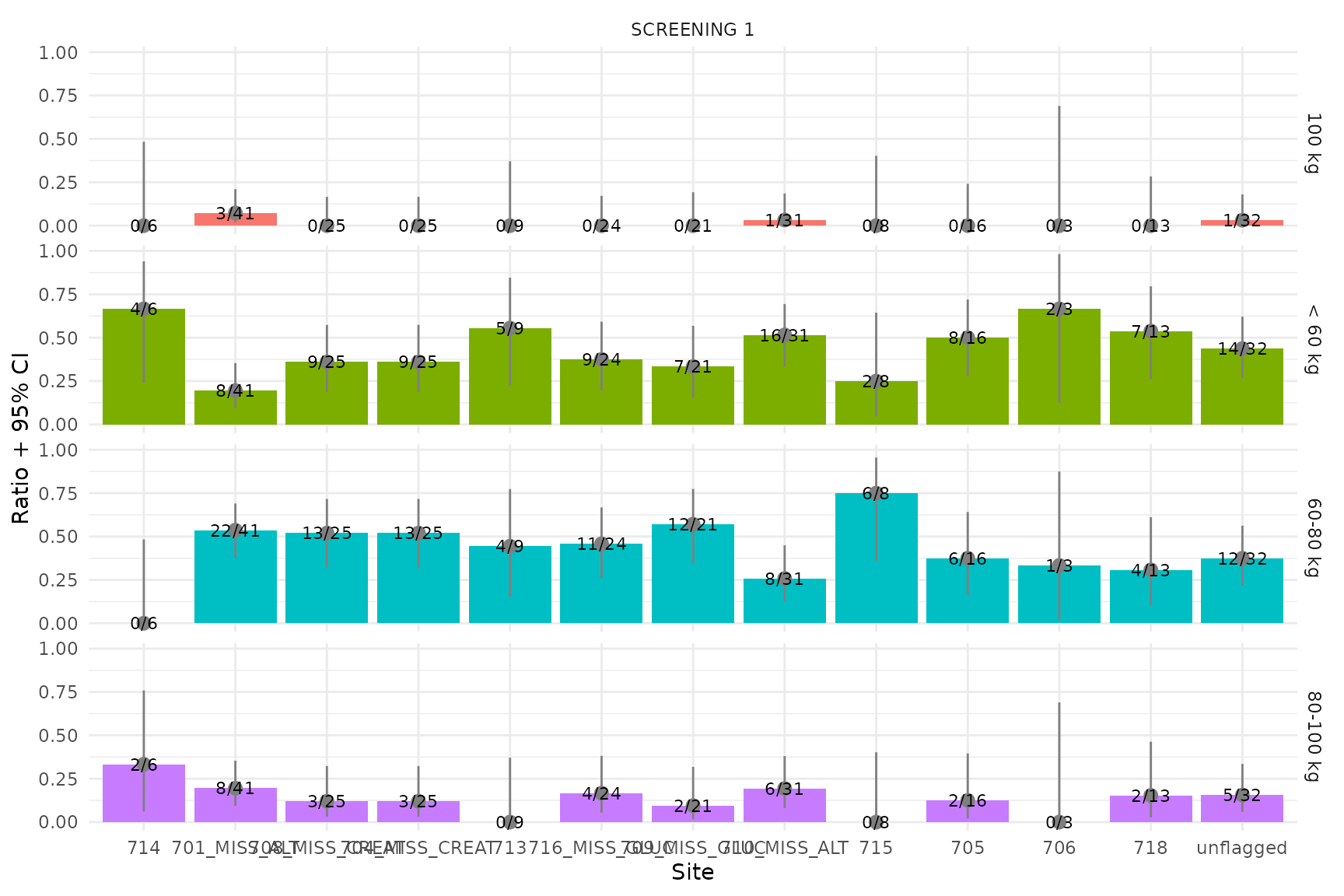 Screening weight categories are displayed as a bar chart since there is only one timepoint per subject.